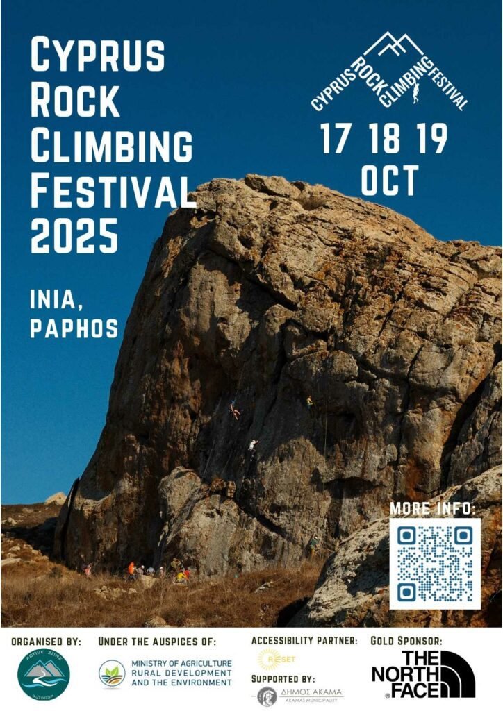Πρόκειται για το 2ο Cyprus Rock Climbing Festival (CRCF) 2025 που θα πραγματοποιηθεί το τριήμερο 17 με 19 Οκτωβρίου 2025, στο αναρριχητικό πεδίο της Ίνειας.