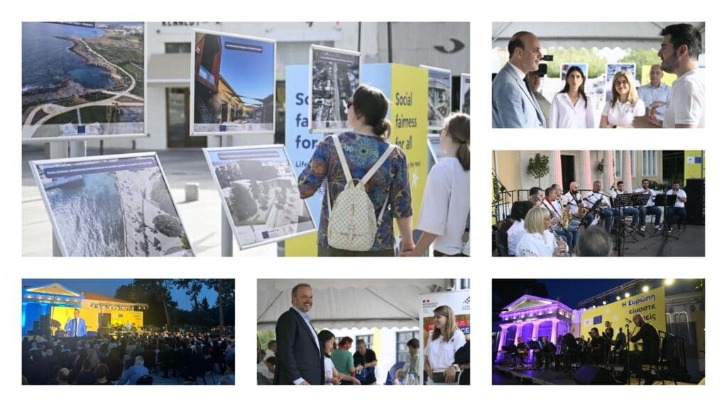 Από τις 5:00 το απόγευμα, η Πλατεία Κέννεντυ μεταμορφώθηκε σε ένα πολύχρωμο και ζωντανό «Ευρωπαϊκό Χωριό», φιλοξενώντας θεματικά περίπτερα που παρείχαν πληροφορίες για τις πολιτικές, τις δράσεις και τα προγράμματα της Ευρωπαϊκής Ένωσης. Οι επισκέπτες είχαν την ευκαιρία να γνωρίσουν από κοντά το έργο ευρωπαϊκών θεσμών, διπλωματικών αποστολών, ακαδημαϊκών και τοπικών φορέων.