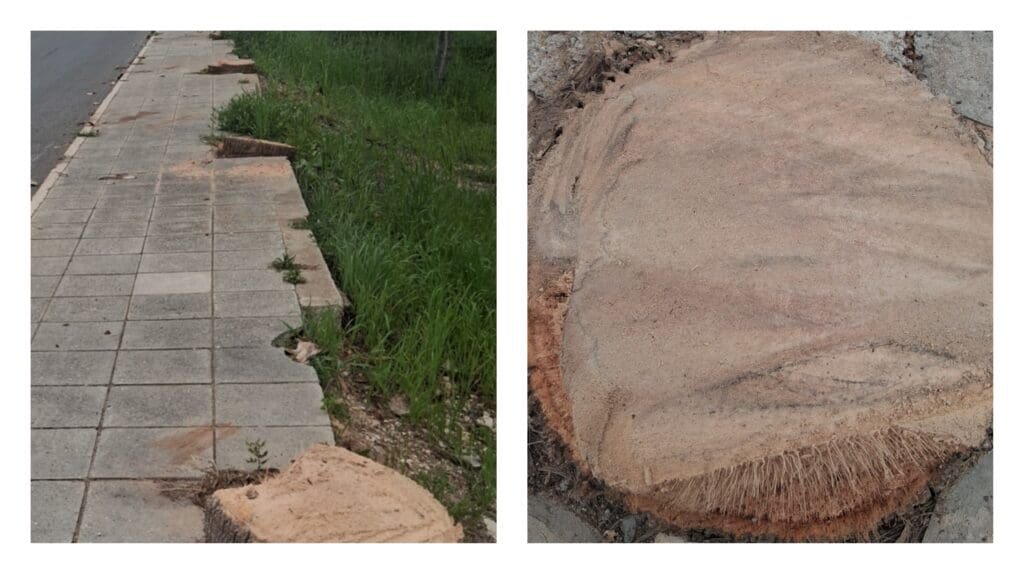 Πρωί πρωί συνεργεία του Δήμου Πάφου επέδραμαν στην οδό Ναπολέων και κατακρεούργησαν 28 μεγάλες φοινικιές. Το έγκλημα είχε σχεδόν ολοκληρωθεί μέχρι τις 9 το πρωί.