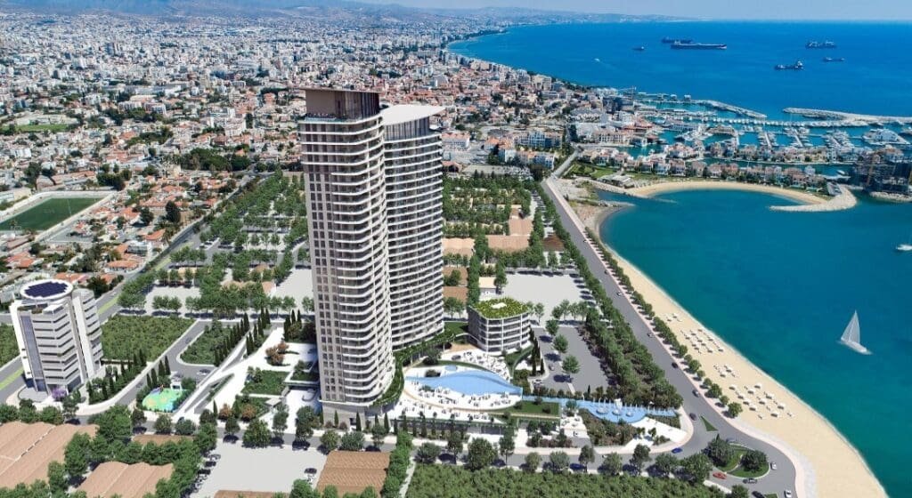 Ο 30όροφος πύργος, «Cavalli Tower at Limassol Blu Marine , δεσπόζει στο παραλιακό μέτωπο της Λεμεσού, προσφέροντας ανεμπόδιστη θέα στη θάλασσα, άμεση πρόσβαση στη μαρίνα και στην επιχειρηματική περιοχή της πόλης.