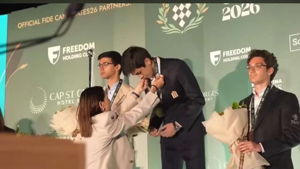 Η τελετή περιλάμβανε στιγμές έντονης συγκίνησης και αναδρομής στους αγώνες, ενώ η κορύφωση ήρθε με τις απονομές των μεταλλίων και των εμβληματικών τροπαίων στους νικητές: τον Javokhir Sindarov από το Ουζμπεκιστάν και τη Vaishali Rameshbabu από την Ινδία, οι οποίοι εξασφάλισαν το δικαίωμα να διεκδικήσουν τον παγκόσμιο τίτλο απέναντι στους εν ενεργεία παγκόσμιους πρωταθλητές.