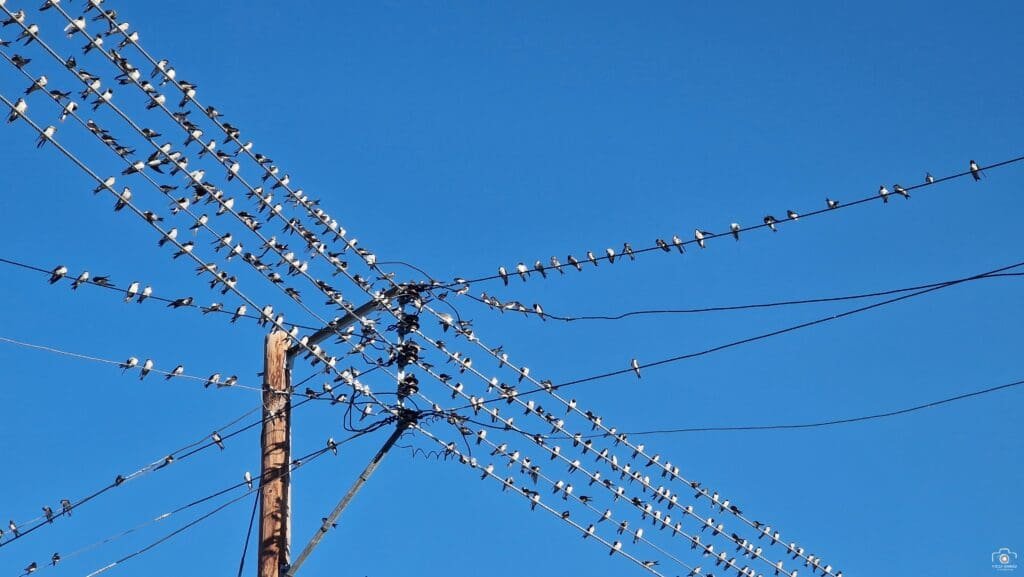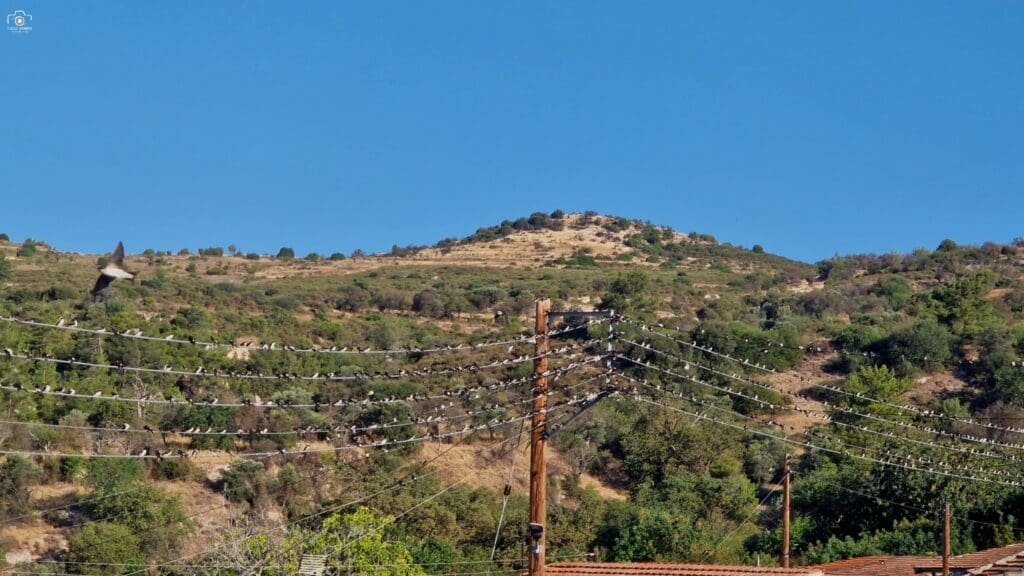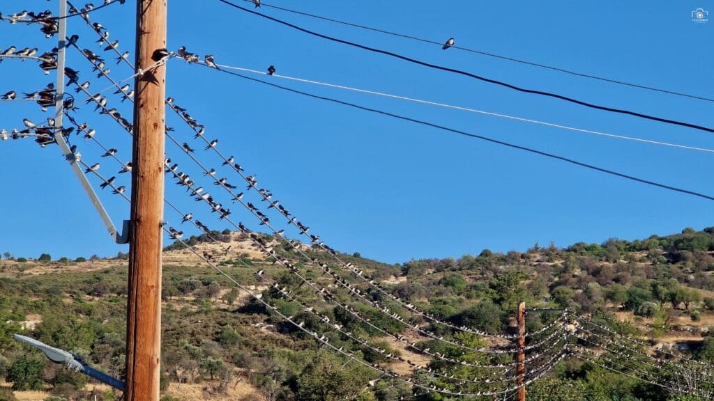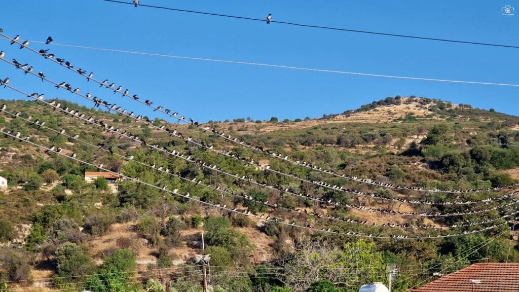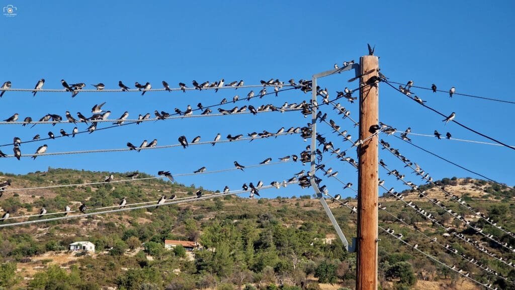 Εκατοντάδες χελιδόνια, συγκεντρωμένα στα καλώδια της ΑΗΚ, χαρίζουν ένα μοναδικό και υπέροχο θέαμα σε όσους έχουν την τύχη να βρεθούν στην μικρή και γραφική κοινότητα Μέσανα της Επαρχίας Πάφου.